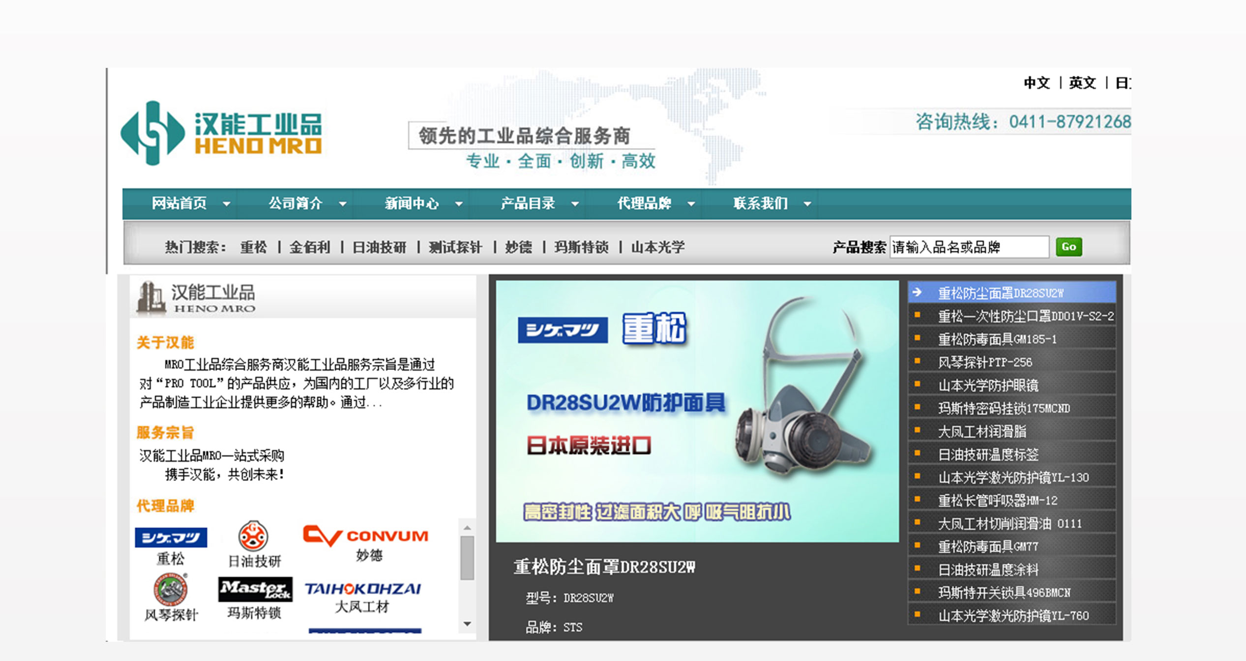 设计理念:汉能工业是优质MRO工业品配套服务商,官网首页面即展示各类工业产品,并提供产品分类目录、代理品牌介绍等。