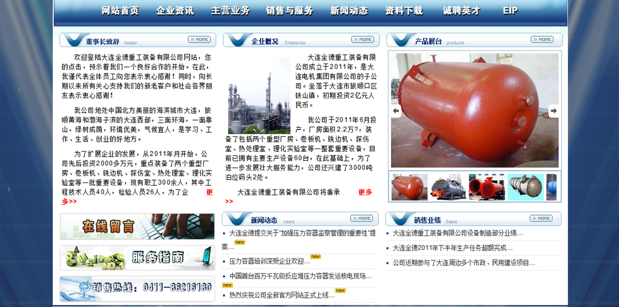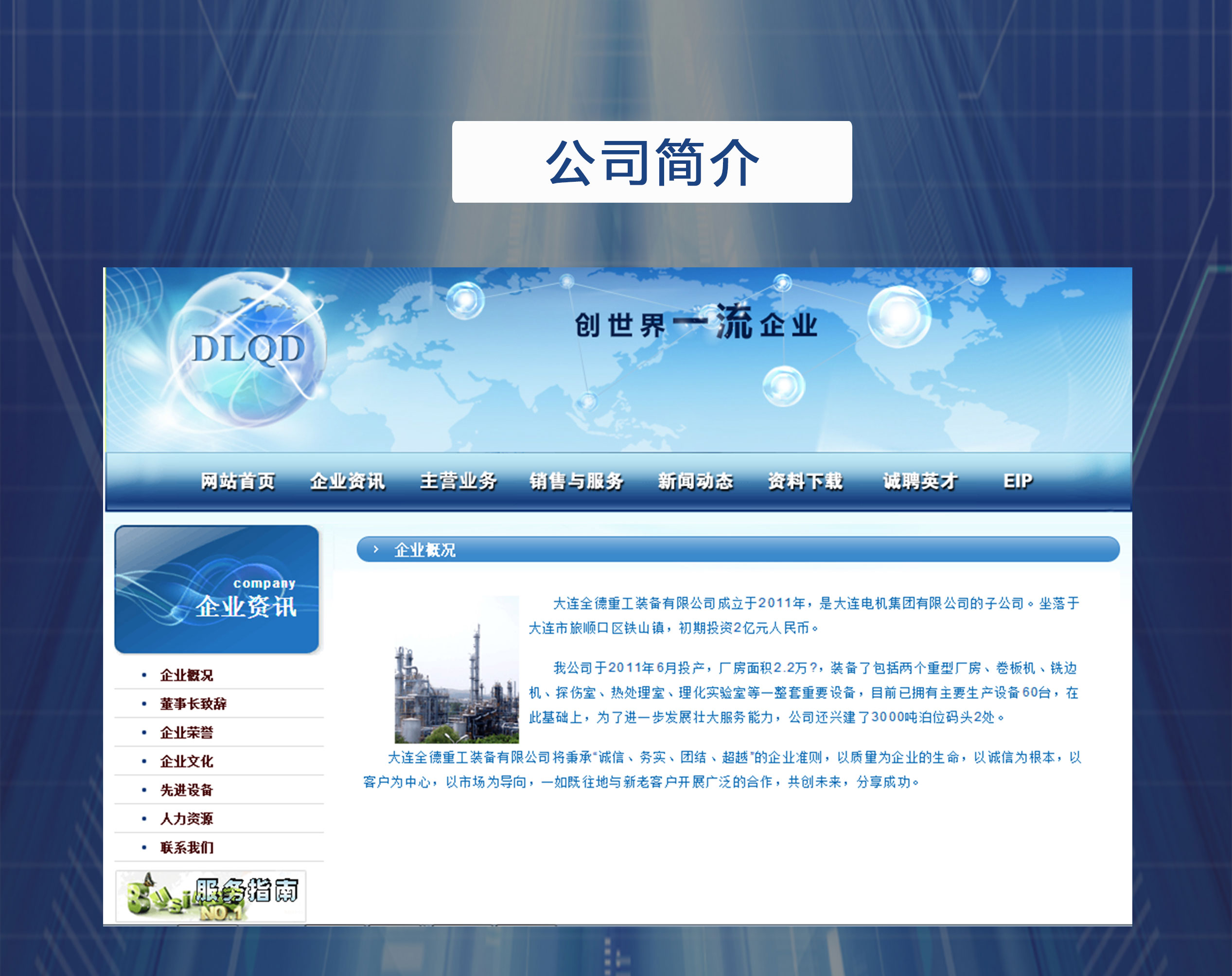 设计理念:制造业官方网站,采用蓝白色系搭配,整体简洁稳重。