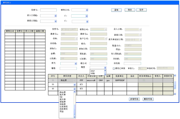 12、对于未审核的资料,离港日期修改后,存储到发票资料档中。同时,对于发票的离港日期,建立一个修改记录档,可以报表查询。