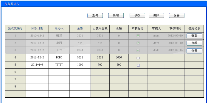 10、导入预收款选择窗口,只查询出已经做过预收款审核的资料。